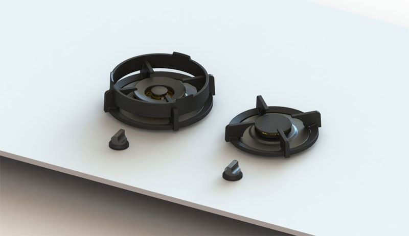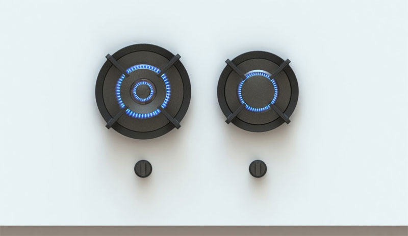• Professionelles, leistungsstarkes Kochen mit drei verschiedenen Brennertypen