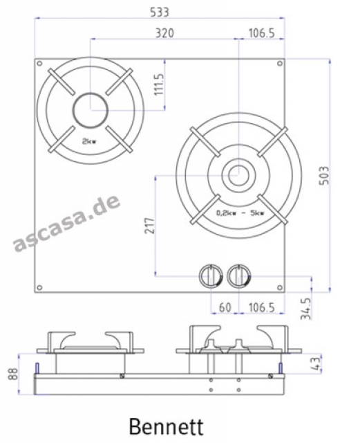 PITT® by Reginox Bennett Professional Gas-Modul für Erdgasbetrieb, 2 Messing-Brenner