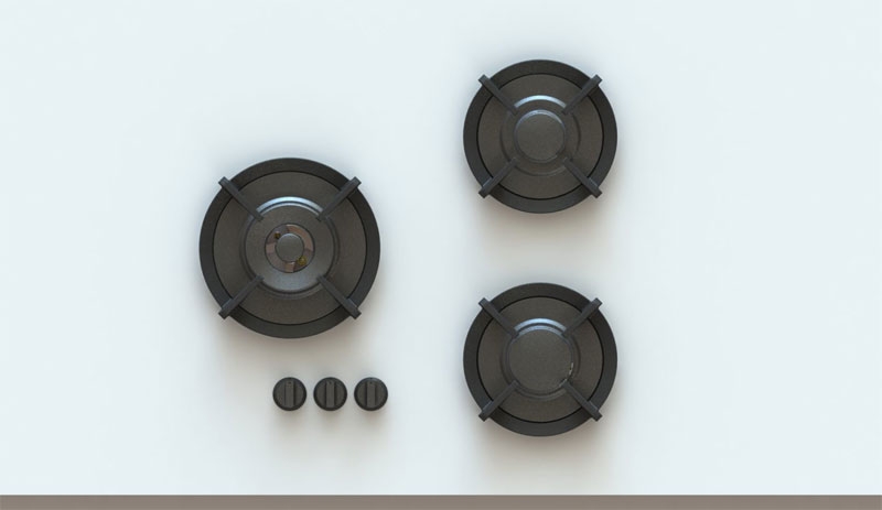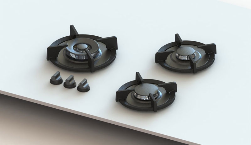 • Professionelles, leistungsstarkes Kochen mit drei verschiedenen Brennertypen