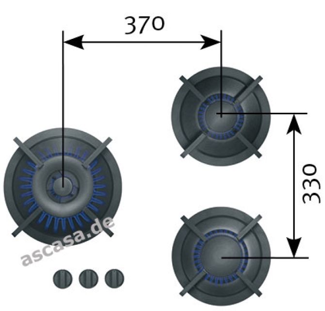 PITT® by Reginox Cima XL Gas-Modul für Flaschengasbetrieb, 3 Aluminium-Brenner