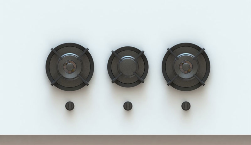 • Professionelles, leistungsstarkes Kochen mit drei verschiedenen Brennertypen