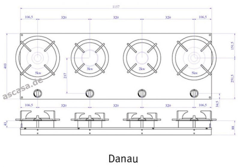 • Anzahl der Brenner: 4 (Material Grauguss/Messing)