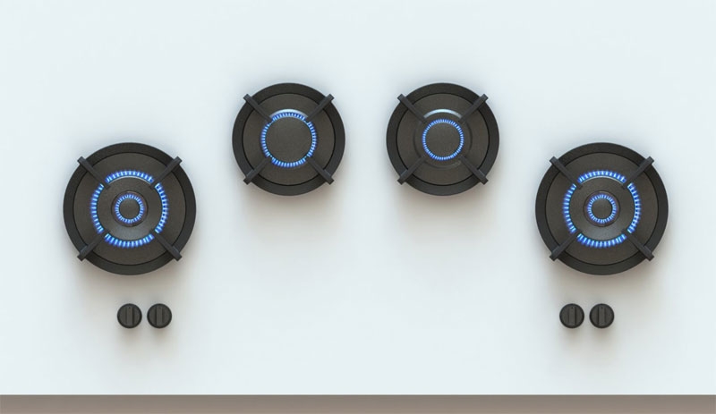 • Professionelles, leistungsstarkes Kochen mit drei verschiedenen Brennertypen