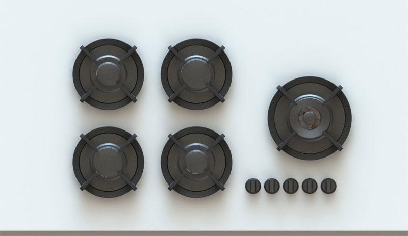 • Professionelles, leistungsstarkes Kochen mit drei verschiedenen Brennertypen