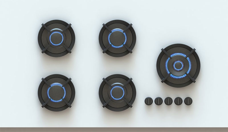 • Professionelles, leistungsstarkes Kochen mit drei verschiedenen Brennertypen
