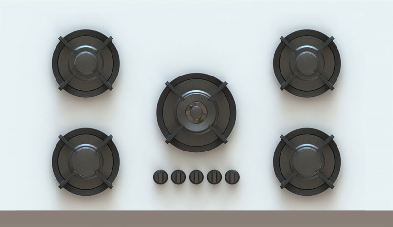 • Professionelles, leistungsstarkes Kochen mit drei verschiedenen Brennertypen