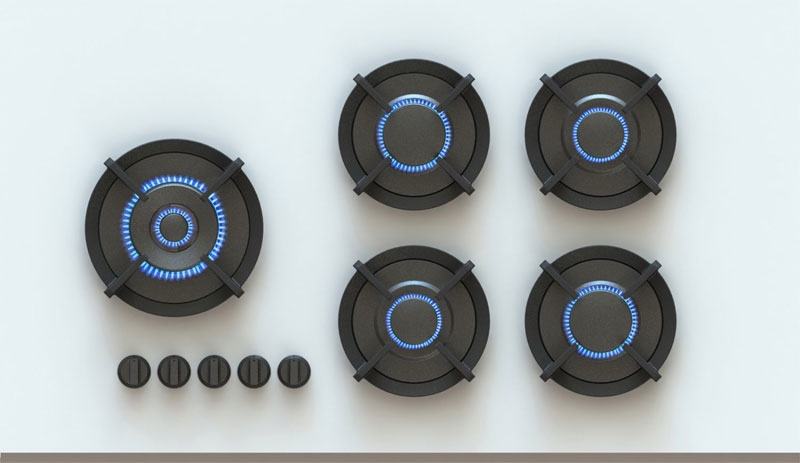 • Professionelles, leistungsstarkes Kochen mit drei verschiedenen Brennertypen