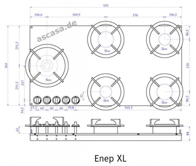 • Anzahl der Brenner: 5 (Material Grauguss/Messing)