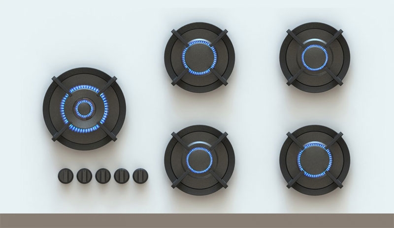 • Professionelles, leistungsstarkes Kochen mit drei verschiedenen Brennertypen
