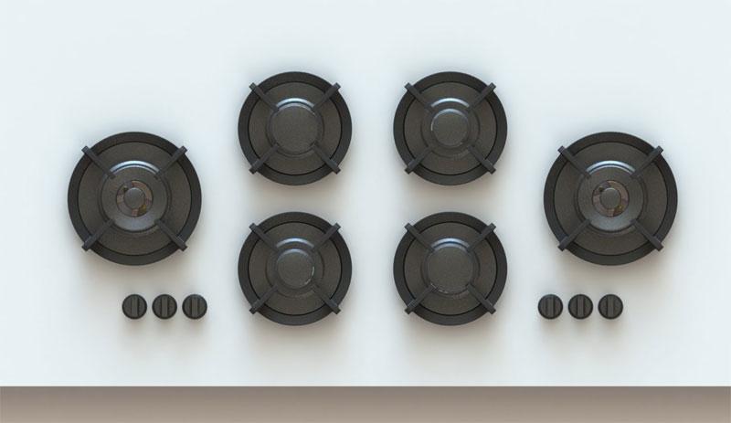 • Professionelles, leistungsstarkes Kochen mit drei verschiedenen Brennertypen