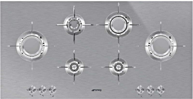 Das SMEG PXL6106  ist eine Einbau-Gaskochmulde mit einer Breite von 100cm und 6 Kochzonen. Sie verfügt u.a. über einen Starkbrenner, einen Blitzbrenner, und 6 Abstellroste aus Edelstahl mit Titanium-Beschichtung.