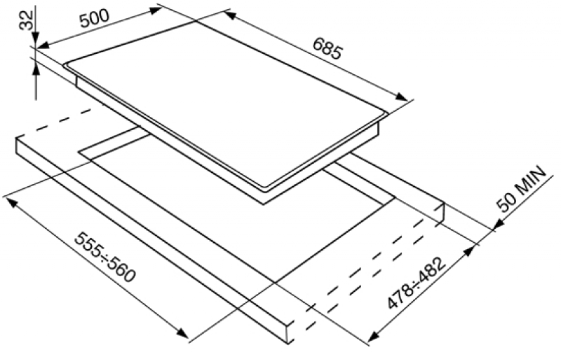• Arbeitsplattenausschnitt 56 x 48 cm
