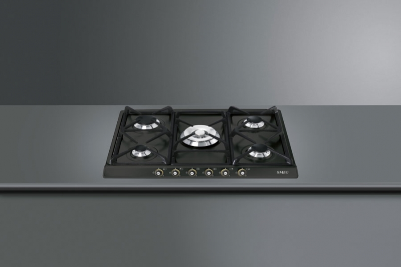 SMEG SR775AOD Gaskochfeld, 70cm, Cortina Design, Mulde in Anthrazit Messing-Antik emailliert, Gussabstellrost, mit 5 Jahren Garantie!