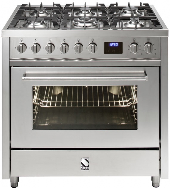 Steel Enfasi 90, Rangecooker, Farbe Edelstahl, 90 cm, Multifunktionsbackofen, 6 Gasbrenner, E9F-6SS, mit 5 Jahren Garantie!