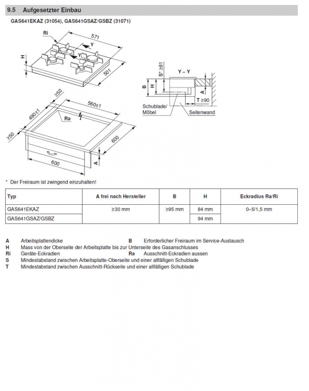 Ausschnitttiefe aufliegend max.: 0.49 m