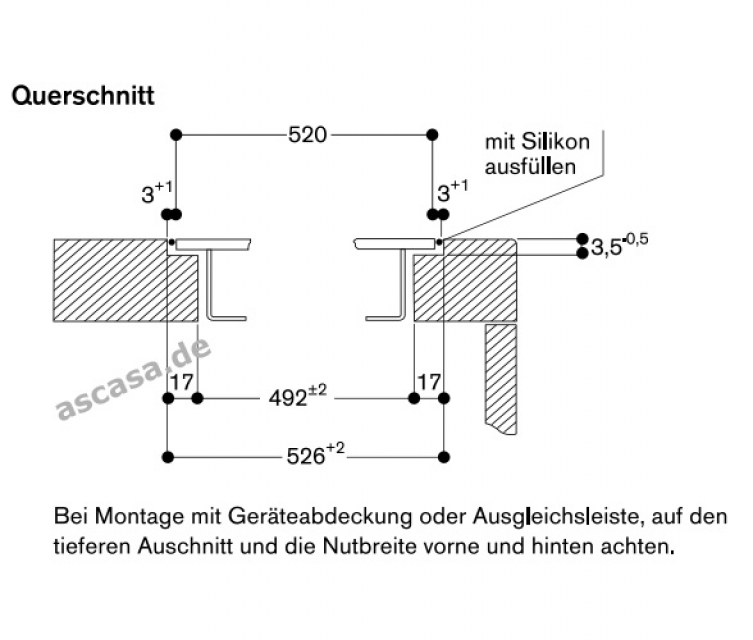 Die Nut muss durchgängig und eben sein, um eine gleichmäßige Auflage der Geräte auf der Dichtung zu gewährleisten.
