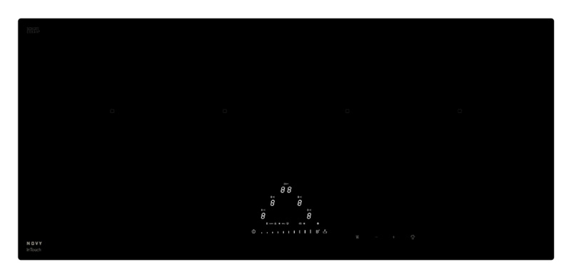- InTouch-Steuerung integriert. Hierbei handelt es sich um eine eingebaute Fernbedienung für kompatible Novy-Dunsthauben (laut technischen Daten der Novy-Dunsthaube). Ermöglicht die serienmäßige Schaltung der fernbedienbaren Novy-Dunsthauben über die im Kochfeld eingebaute Fernbedienung.