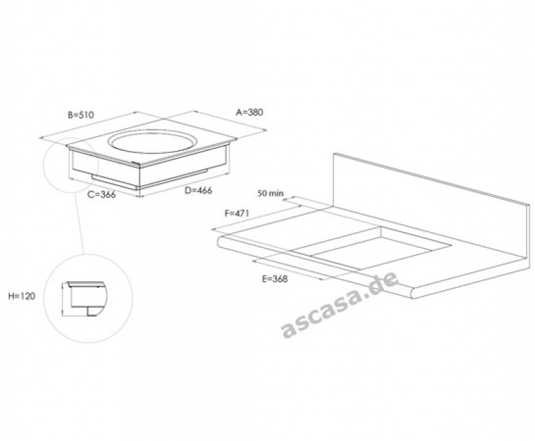• Ausschnitmaß (B) x (T): 370 x 470 mm