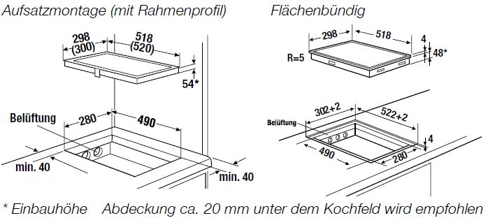 Ausschnittmaße B x T ca. 280 x 490 mm