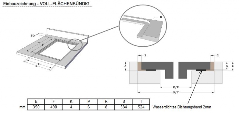 Zur Auflage oder zum voll-flächenbündigen Einbau