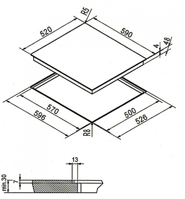 Ausschnittmaße aufliegend: 570 mm x 500 mm