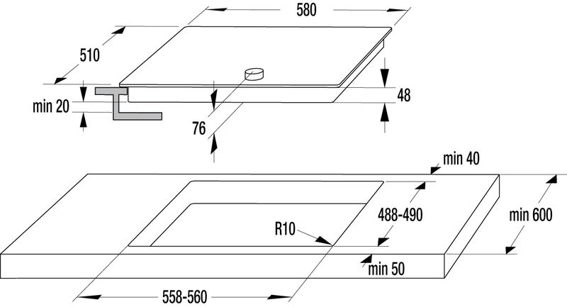 • Gerätemaß (HxBxT in mm): 48x580x510