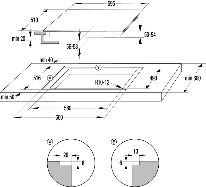 • rahmenlos, flächenbündiger Einbau (kann auch aufliegend eingebaut werden)