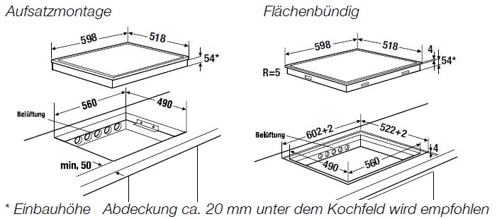 • Ausschnittmaße   B x T ca. 560 x 490 mm