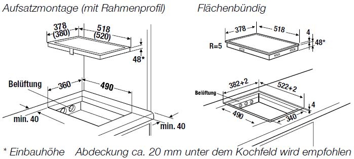 • Ausschnittmaße B x T ca. 360 x 490 mm