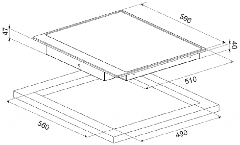 - Gerätemaße: H 50 x B 596 x T 510 mm