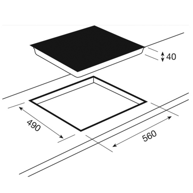 - Unter dem Kochfeld mind. 20 mm Freiraum lassen, um eine ausreichende Belüftung zu gewährleisten.