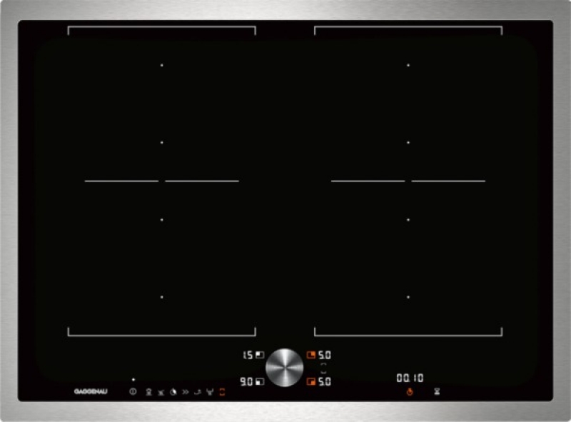 Gaggenau 70 cm Induktionskochfeld, Edelstahl-Rahmen, Twist-Pad-Bedienung, Bratsensor-Funktion, Flex-Funktion, Booster-Funktion, 17 Leistungsstufen, Kochzonenmarkierung, Zweistufige-Restwärmeanzeige, CI 272110