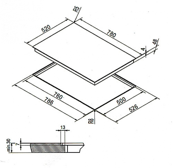 Ausschnittmaße aufliegend: 760 mm x 500 mm
