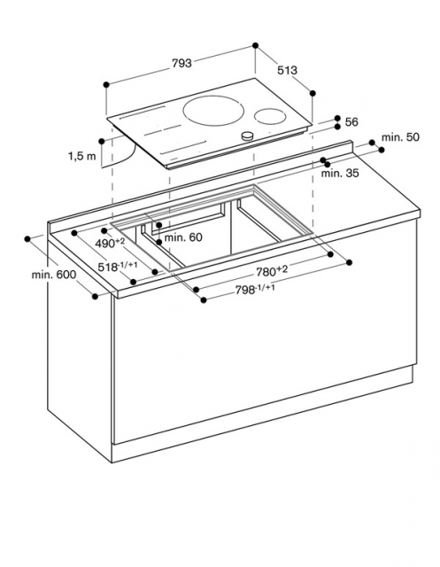 1 Induktions-Kochzone ø 15 cm (1400 W, mit Booster 2200 W)