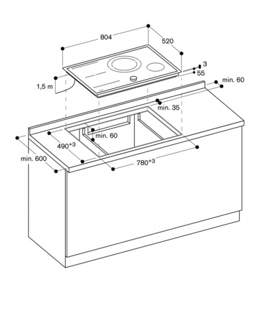 1 Induktions-Kochzone ø 15 cm (1400 W, mit Booster 2200 W)
