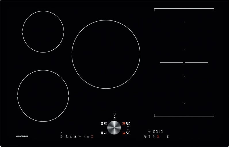 Gaggenau 80 cm Flex Induktionskochfeld Serie 200, CI 283101, 5 Kochzonen, Twist-Pad-Bedienung, Kochzonenmarkierung, Booster-Funktion, Topferkennung, rahmenlos, flächenbündiger Einbau