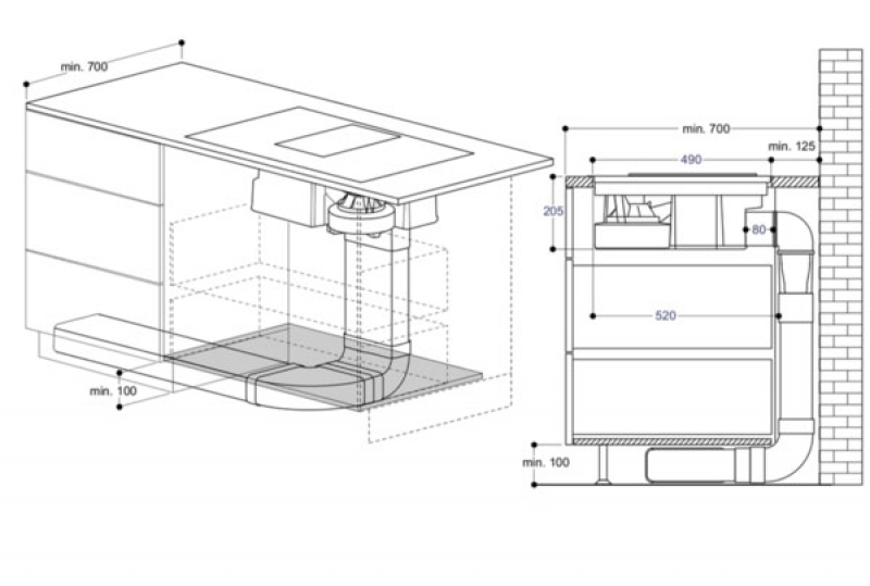 - Unterschrankbreite: min. 80 cm.