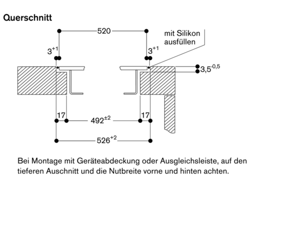 - Die Nut muss durchgängig und eben sein, um eine gleichmäßige Auflage der Geräte auf der Dichtung zu gewährleisten.
