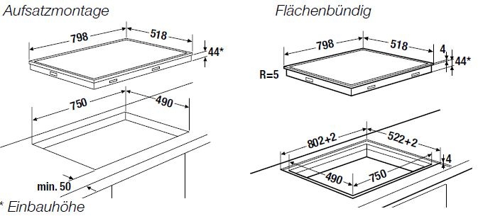 • Ausschnittmaße B x T ca. 750 x 490 mm