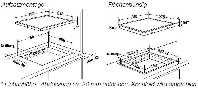 • Ausschnittmaße B x T ca. 750 x 490 mm