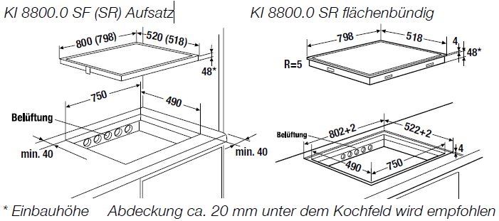 • Ausschnittmaße B x T ca. 750 x 490 mm