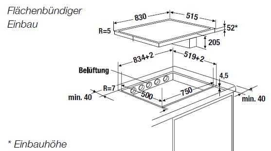 • Ausschnittmaße B x T ca. 750 x 500 mm