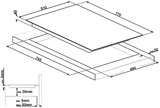 • M:   Ø 170/265 mm, - 1,4 kW/2,2 kW (Zweikreisbräterzone oval)