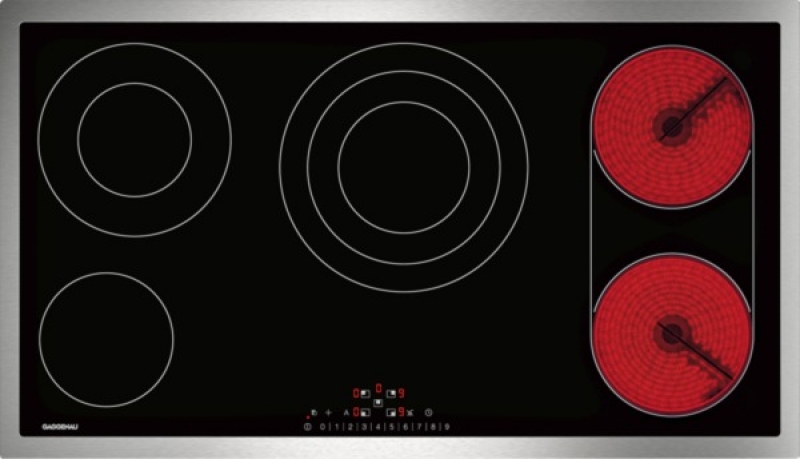 Gaggenau 90 cm Glaskeramikkochfeld, Edelstahl-Rahmen, Sensor-Bedienung, 2 Super-Quick-Kochzonen, 17 Leistungsstufen, Kochzonenmarkierung, Große Bräterzone, Einzel-Restwärmeanzeige, CE 291111