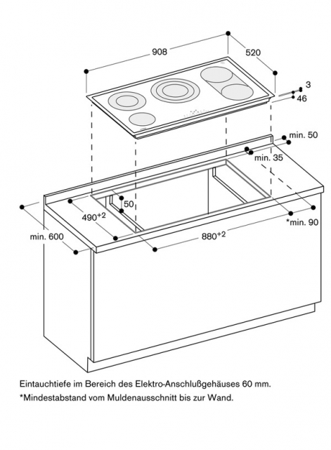 - Einbau in 60 cm breiten Unterschrank möglich.