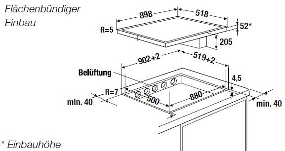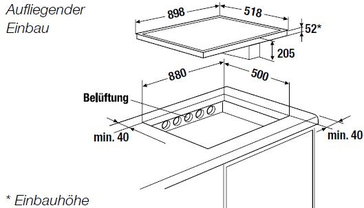 • Ausschnittmaße B x T ca. B 860 x T 500 mm