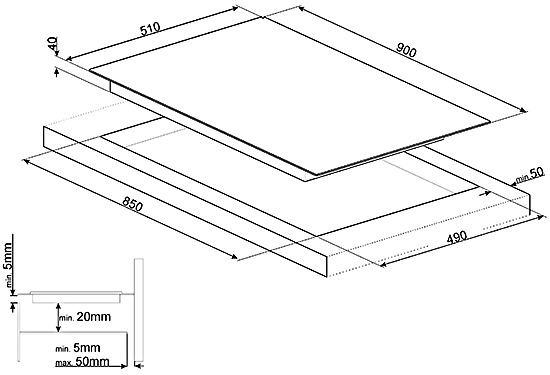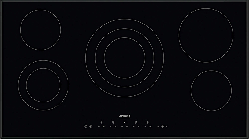 SMEG SE395ETB Glaskeramik-Kochfeld, Facettenschliff, 90 cm, neutrales Design, 5 Hi-Light-Kochzonen, Sensor-Touch-Control, Auto-Stop Überhitzungsschutz