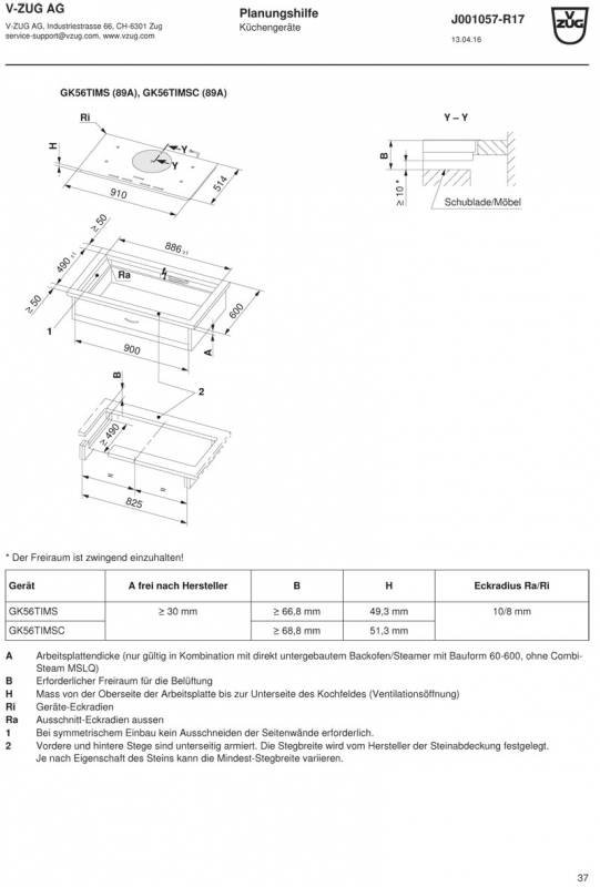 • Ausschnitttiefe aufliegend max.: 0.49 m