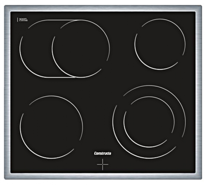 Constructa CM323052, Elektrokochstelle, Glaskeramik schwarz, Edelstahlrahmen, 4 Kochzonen, 60 cm, mit 5 Jahren Garantie!