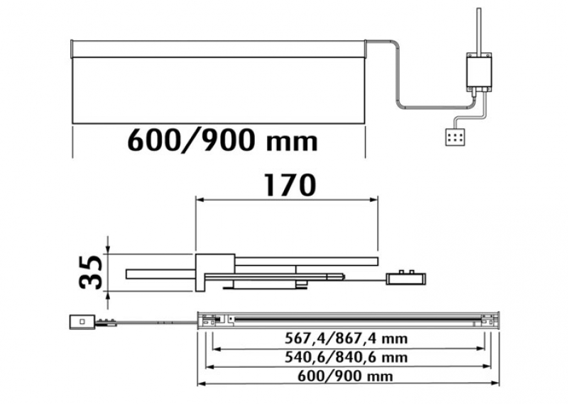 • der Konverter ist nicht im Leuchtengehäuse integriert und muss separat bestellt werden